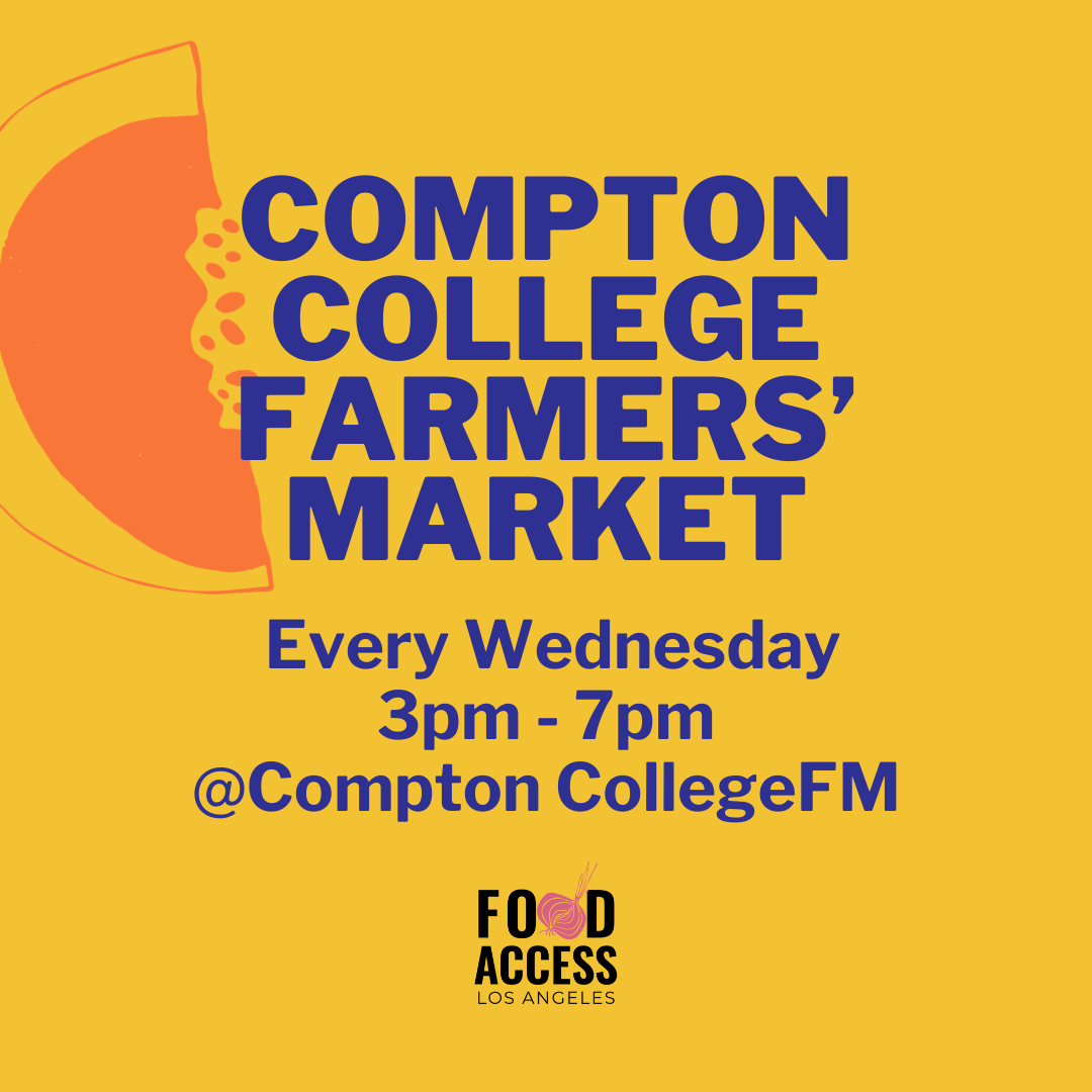 FIND US AT THE FARMERS MARKETS LA RIVER FARMERS MARKET THURSDAYS 3pm - 7:30pm1245 N Spring Street, LA State Historic Park FOR MORE INFORMATION ABOUT THE LA RIVER MARKET CLICK HERE COMPTON COLLEGE FARMERS MARKET FOR MORE INFORMATION ABOUT THE COMPTON COLLEGE FARMERS MARKET CLICK HERE